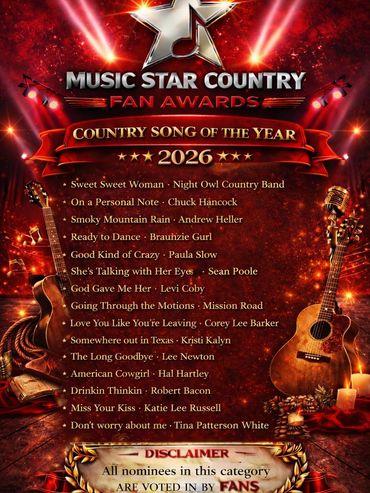 Join us March 19th at 7PM LIVE at the legendary Troubadour of Nashville as we announce this year’s WINNERS at the 1st Annual 2026 Music Star Fan Awards!